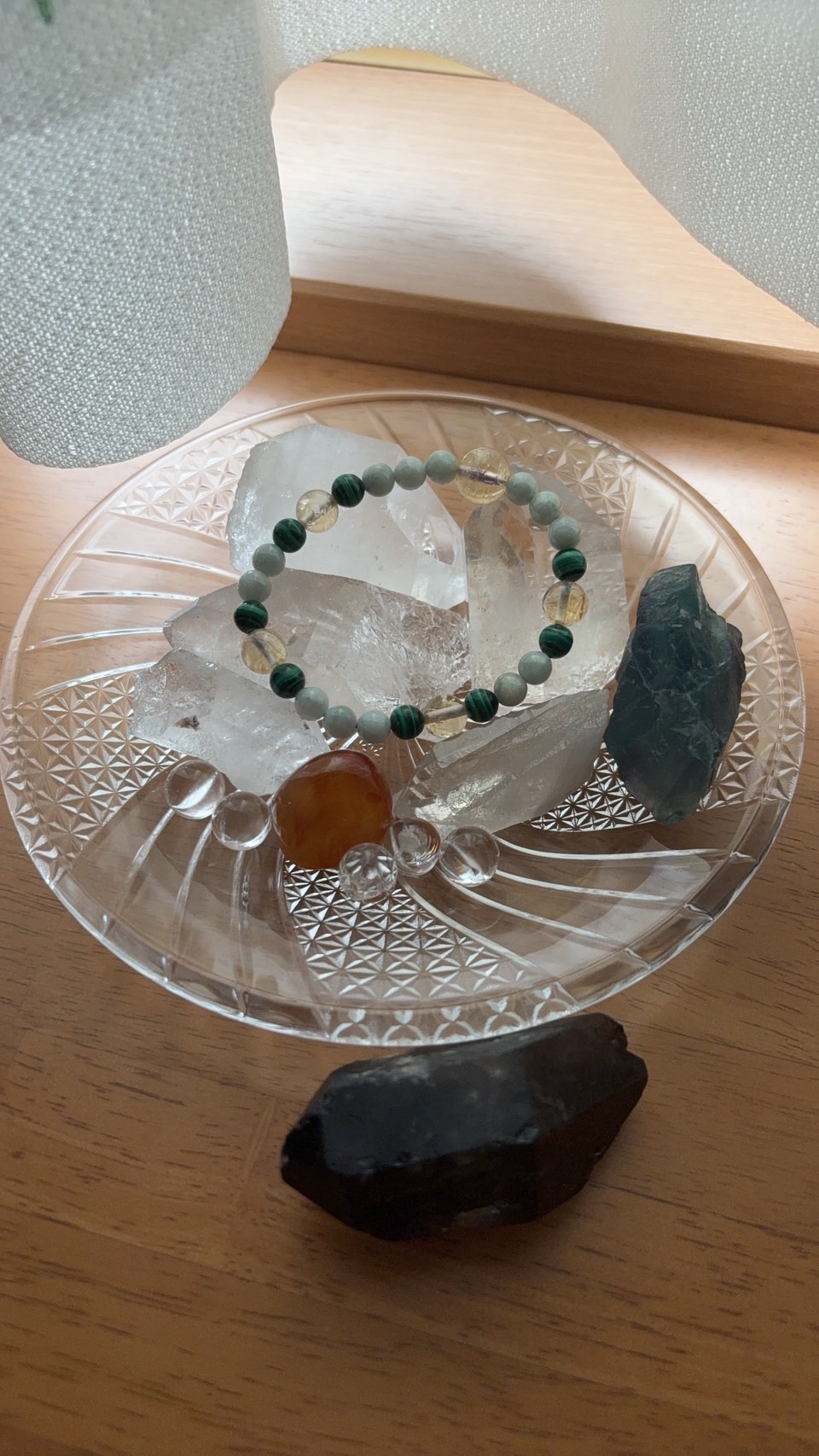 以前から気になっていたけど私には敷居が高いと思っていたルチルクォーツ、あとグリーンガーネットと翡翠、、優しいお色で見ても着けても安心します。